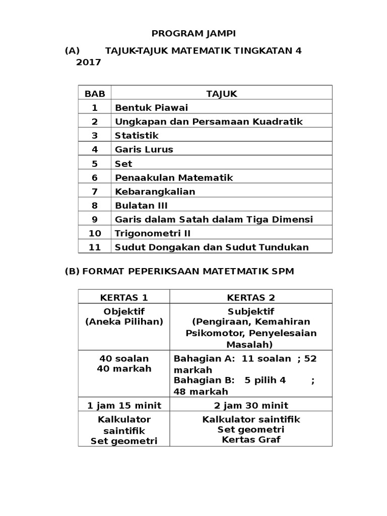 Kertas soalan peperiksaan percubaan matematik (mathematics) spm 2017 (kertas 1 dan kertas 2) + skema jawapan. Aug 16, 2019 · bank soalan percubaan spm matematik 2017 ini diadakan dengan matlamat untuk memudahkan rujukan, mengukuhkan pemahaman dan meningkatkan pencapaian pelajar. Jun 09, 2021 · koleksi soalan spm sebenar tahun 2014, 2015,2016,2017, 2018, 2019 & spm ulangan (bahasa melayu, matematik, sejarah) diterbitkan oleh afterschool.my pada jun 09, 2021 , 12:14 pm facebook twitter google+ Trial examination papers + answers. Diharapkan para ibubapa, guru dan pelajar memperoleh manafaat semaksimum mungkin apabila menggunakannya.