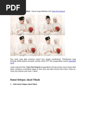 Solat Sunat Nikah from nadz.my Sepatutnya solat sunat selepas akad nikah tidak ada, ianya perkara baru. Solat sunat nikah ini didirikan secara 2 rakaat sahaja dengan niat seperti berikut: Solat sunat selepas akad nikah dilakukan bagi menzahirkan rasa kesyukuran dalam hati kepada allah سبحانه وتعالى yang telah menentukan jodoh pertemuan dengan isteri suami yang tersayang. Solat sunat selepas akad nikah akad nikah muslimah wedding nikah. Niat solat sunat selepas nikah adalah seperti berikut: Berdasarkan dua athar di atas, sebahagian ulama' mengatakan bahawa hukum solat sunat selepas nikah itu dibolehkan berdasarkan perbuatan para salaf. Sahaja aku solat sunat nikah (berkahwin) dua. Berkata bahawa para sahabat nabi yang dijemput ke.